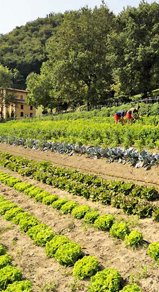 La nostra azienda si trova immersa nel Parco Regionale dell'Abbazia di Monteveglio, nella provincia di Bologna, ed è qui che produciamo la frutta e la verdura che vendiamo nel nostro punto vendita.